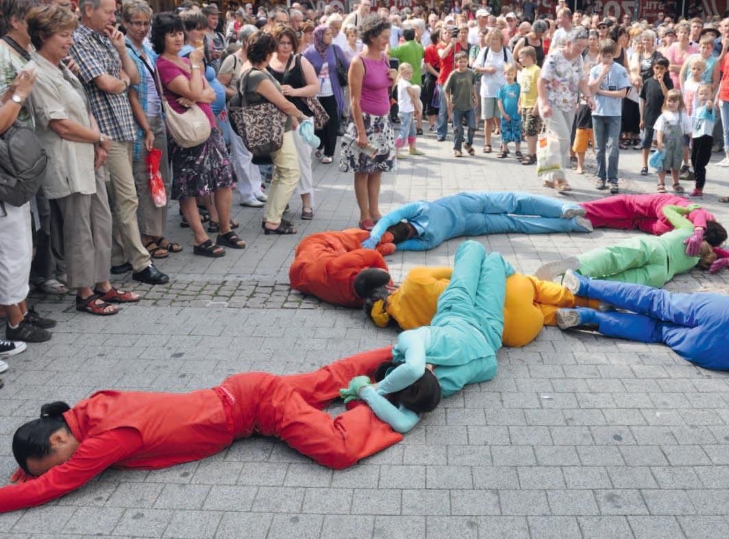 CONCEPT, DIRECTION ARTISTIQUE Antonio Bühler, Brigitte Meuwly | CHORÉGRAPHIE Antonio Bühler, Brigitte Meuwly, en collaboration avec les danseurs | INTERPRÈTES Coralie Merle, Deborah Hofstetter, Dominique Cardito, Ismael Oiartzabal, Jasmine Morand, Joshua Monten, Marco Volta, Vittorio Bertolli | MUSIQUE Philippe Héritier | COSTUMES Brigitte Meuwly | COPRODUCTION DA MOTUS!, Nuithonie-Fribourg dans le cadre de «RésiDanse fribourgeoise», Festival Neuchâtel Scène Ouverte (ADN), International Strassentheater Festival Ludwigshafen | CRÉATION 9 juillet 2009, Festival Neuchâtel Scène Ouverte (ADN) | SOUTIENS Service Culture Canton Fribourg, Loterie Romande, Coriolis Fribourg, Pro Helvetia – Fondation suisse pour la culture, Commune de Givisiez | PHOTO Antonio Bühler